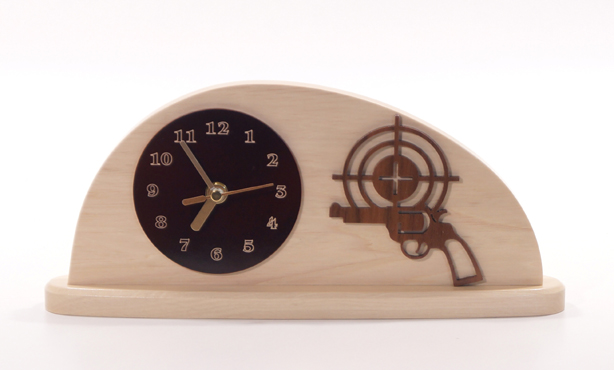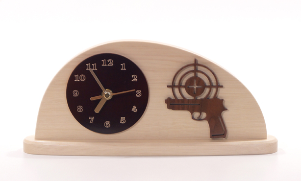 ovaler Sockel natur, geschwungene Rückwand natur, Sportsymbol Sportschützen Revolver |