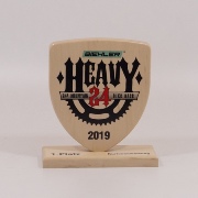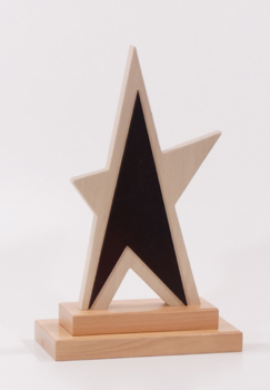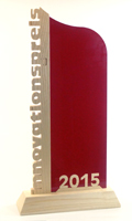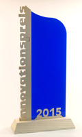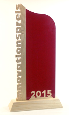 Sockel aus massiever Esche, Schriftzug "Innovarionspreis" ausgefräst,