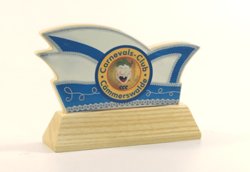 Sockel aus massiever Esche, Karnevalkappe ausgefräst,